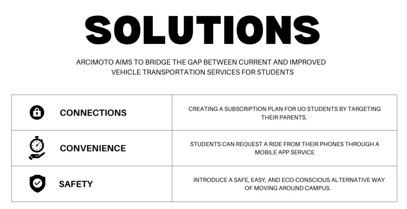 This campaign is to get the University of Oregon students and their parents to use Acrimoto as their preferred form of transportation.